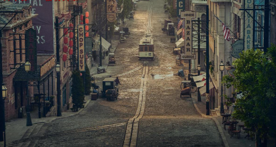 应电影情节筹画出旧金山中央大路、唐东谈主街、欧洲街这三条骨干谈,所有遐想出228栋作风不一、各具特色的建筑体,单是置景组就多达722东谈主。