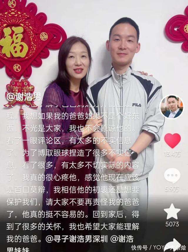 我想,这个事件也给咱们每一个东说念主都敲响了一个警钟。在当代社会,信息传播速率极快,咱们不成盲目跟风,要学会用感性的想维去分析和判断。就像谢浩男事件,淌若咱们都能够愈加舒缓地去想考,可能就会发现好多事情并不是咱们当先看到的那样。同期,这个事件也让咱们看到了家庭关系中的爱与包容。谢浩男对父母的领路和包容,不单是是一种浅易的家庭慈详的体现,更是一种东说念主性温柔的阐扬。这种温柔在这个复杂多变的社会中,就像一盏明灯,照亮了咱们内心深处最柔嫩的方位。