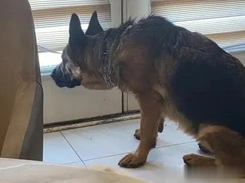 另一只也乖乖坐在地上,尾巴小心翼翼地轻摇,完全是一副“卑躬违反”的款式。
